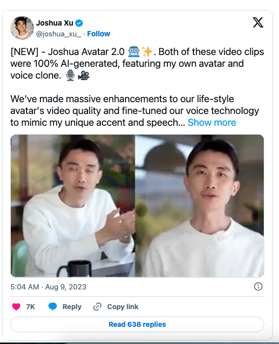 Xu表示,新的头像提供了更高质量的视频和更精细的语音技术,以更有效地匹配语音模式。