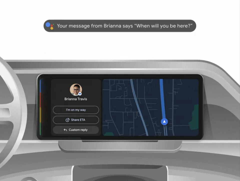 在关注安全驾驶的前提下,谷歌为Android Auto带来了AI文本摘要功能。当用户驾车时,如果收到大量短信或长篇消息,Android Auto将自动为这些消息生成摘要并朗读给用户,以减少分心。此外,它还提供了一键回复和分享ETA的建议,帮助用户更专注于驾驶。
